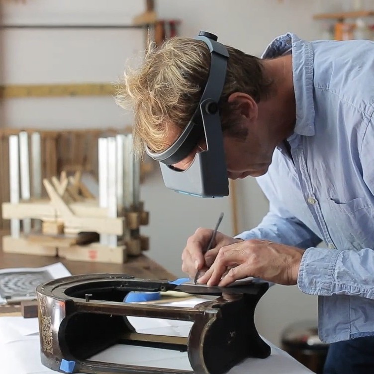 It is by combining the craft techniques of cabinetmaking and goldsmithing with the restoration techniques specific to furniture and the decorative arts that his expertise in Boulle marquetry has developed, expertise that continues to grow. After many years of practice, he has also developed tools and processes specially designed for this purpose.